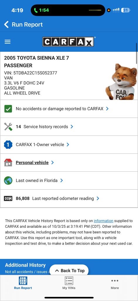 Message: Thought you might be interested in this 2005 Toyota Sienna.